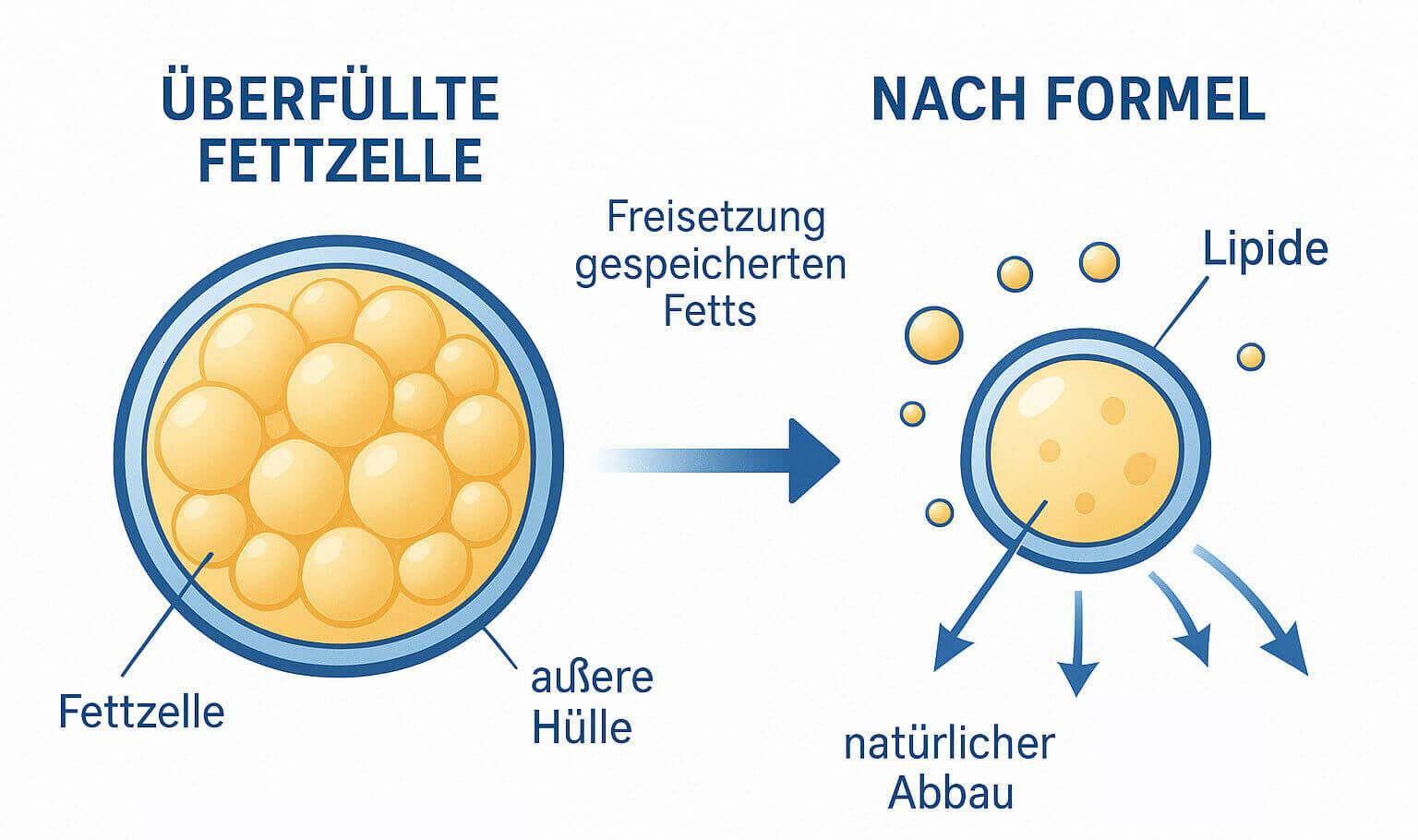 Die Formel löst gezielt die äußere Hülle überfüllter Fettzellen auf, sodass der Körper das